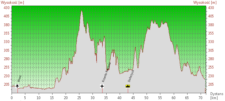Zgodnie z danym słowem byłem, choć nie będę kłamał, że rano omal nie zaspałem, a dodatkowo kiepskie samopoczucie zupełnie nie zachęcało do wychodzenia gdziekolwiek .Na szczęście się zmobilizowałem, dzięki czemu nie straciłem bardzo fajnego i udanego wyjazdu. Pogoda dopisała, szlak trochę kiepsko oznaczony, ale MisQ-nawigator nie dawał skubańcowi za daleko uciec. Większość trasy asfaltami i szutrami, także rowerów nie trzeba odkopywać spod warstwy błota . No i oczywiście wspaniałe towarzystwo . W końcówce na paru podjazdach było troszkę zabawy w podkręcanie tempa, ale na szczęście zdążyłem odżyć i też się mogłem trochę pobawić B)... chyba pierwszy wyjazd w tym tygodniu z którego jestem tak zadowolony .Dzięki wielkie za wycieczkę .Kilka danych liczbowych: Dystans: 70km Czas wyjazdu: 5:10:00 Czas jazdy: 3:45:00 Średnia prędkość wyjazdu: 13,6km/h Średnia prędkość jazdy: 18,9km/h Przewyższenie: 1070m W załączniku profil trasy. Pozdrawiam Axi dodał/a następującą grafikę: ![]() | |