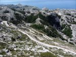 Potem kierujemy się w stronę miasteczka Vrgorac. Pokonujemy przełęcz na wysokości około 600 metrów. Krajobraz robi się typowo Chorwacki. Słońce praży, wszędzie wokół niegościnne góry pokryte skalnymi rumowiskami i porośnięte kolczastym krzalem. To królestwo wszelkiej gadziny i robactwa. Co chwilę słychać stamtąd jakieś chrzęsty, szumu i odgłosy ruchu gdy nadjeżdżamy. Niektórych mieszkańców krzalu można zobaczyć na drodze gdzie zakończyły swój żywot pod kołami samochodu.